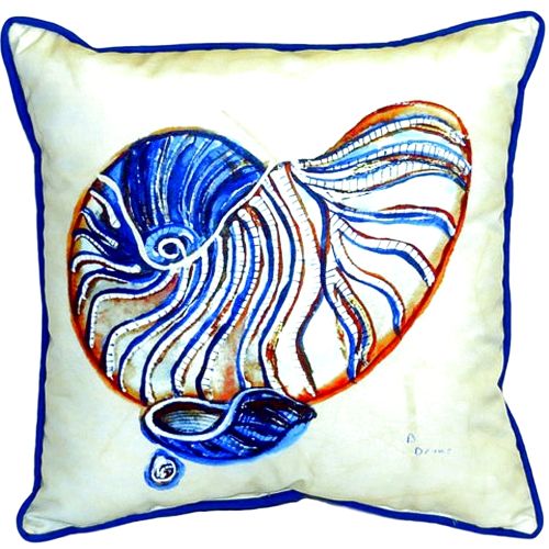 New Large indoor/outdoor pillows. Betsty's Nautilus Large Indoor/Outdoor Pillow versatile pillows are equally at home enhancing an interior design or adding life to an outdoor setting. They feature printed outdoor, fade resistant fabric for years of wear and enjoyment. Indoor/Outdoor Use Artwork on one side.