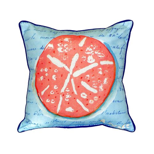 Coral Sand Dollar Blue Small Indoor/Outdoor Pillow versatile pillows are equally at home enhancing an interior design or adding life to an outdoor setting. They feature printed outdoor, fade resistant fabric for years of wear and enjoyment. Artwork on one side. Measure 12"x12" or 11"x14" depending on shape. Machine Washable Artwork on one side.