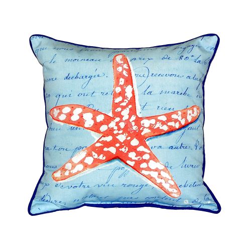 Coral Starfish Blue Small Indoor/Outdoor Pillow versatile pillows are equally at home enhancing an interior design or adding life to an outdoor setting. They feature printed outdoor, fade resistant fabric for years of wear and enjoyment. Artwork on one side. Measure 12"x12" or 11"x14" depending on shape. Machine Washable Artwork on one side.