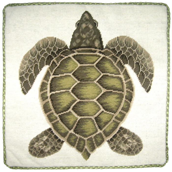 What a great coastal Green Turtle pillow to enchant your coastal home. This wonderful sea turtle pillow will accent your sofa, chair or bedroom with a outstanding work of art pillow. This finely detailed square Green Sea Turtle Needlepoint Pillow is made with the finest vegetable dyed Australian and New Zealand wool threads.This handmade pillow features a cotton velvet backing and feather down insert and is trimmed with cord.