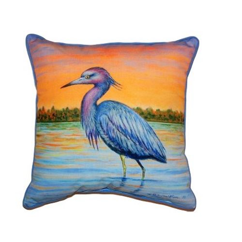 New Large indoor/outdoor pillows. Heron & Sunset Large Indoor/Outdoor Pillow versatile pillows are equally at home enhancing an interior design or adding life to an outdoor setting. They feature printed outdoor, fade resistant fabric for years of wear and enjoyment. Indoor/Outdoor Use Artwork on one side.