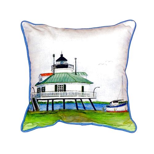 Hopper Strait Lighthouse Small Indoor/Outdoor Pillow versatile pillows are equally at home enhancing an interior design or adding life to an outdoor setting. They feature printed outdoor, fade resistant fabric for years of wear and enjoyment. Artwork on one side. Measure 12"x12" or 11"x14" depending on shape. Machine Washable Artwork on one side.
