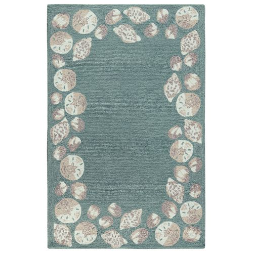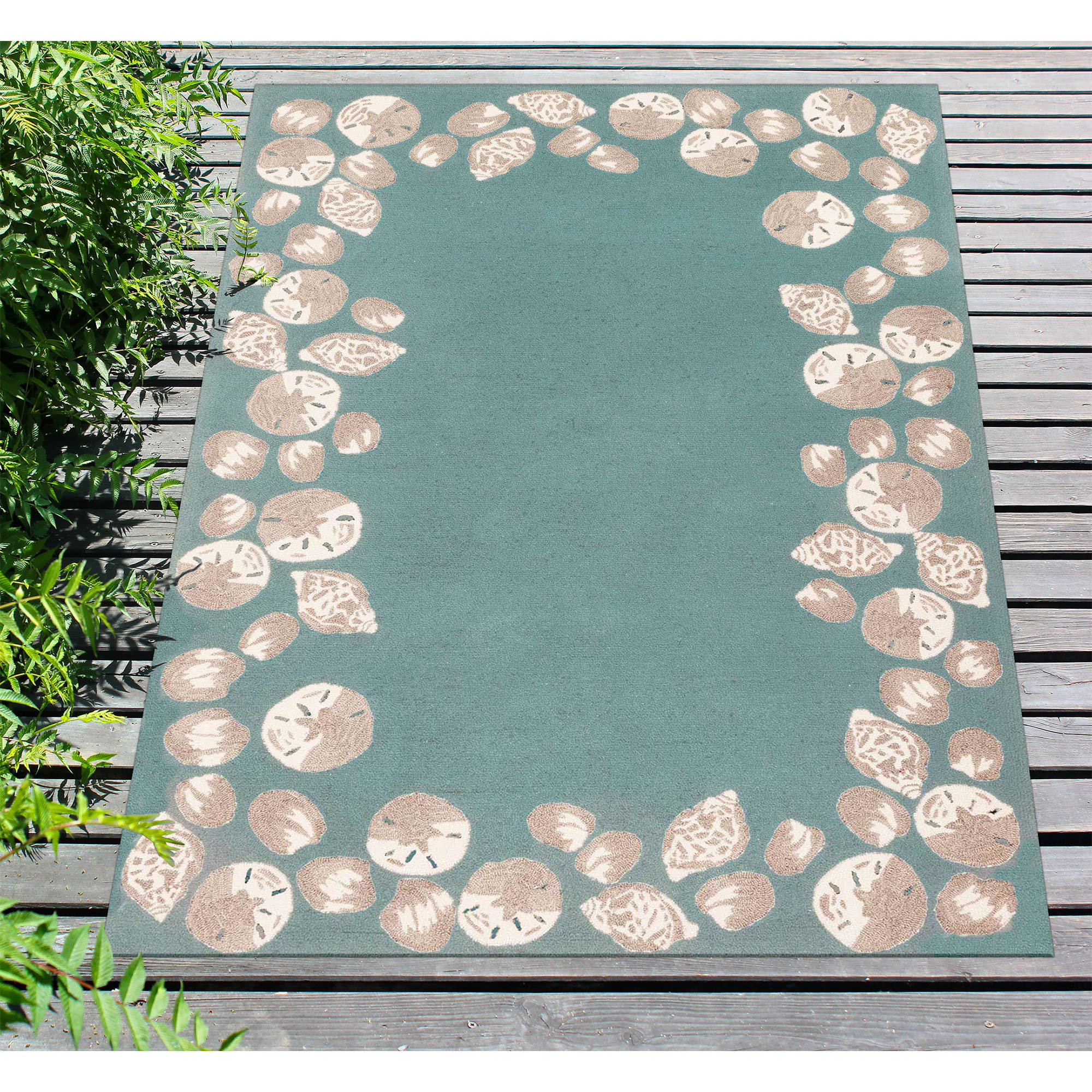 Liora Manne Capri Seashell Border Indoor/Outdoor Rug Aqua measures 42"X66"