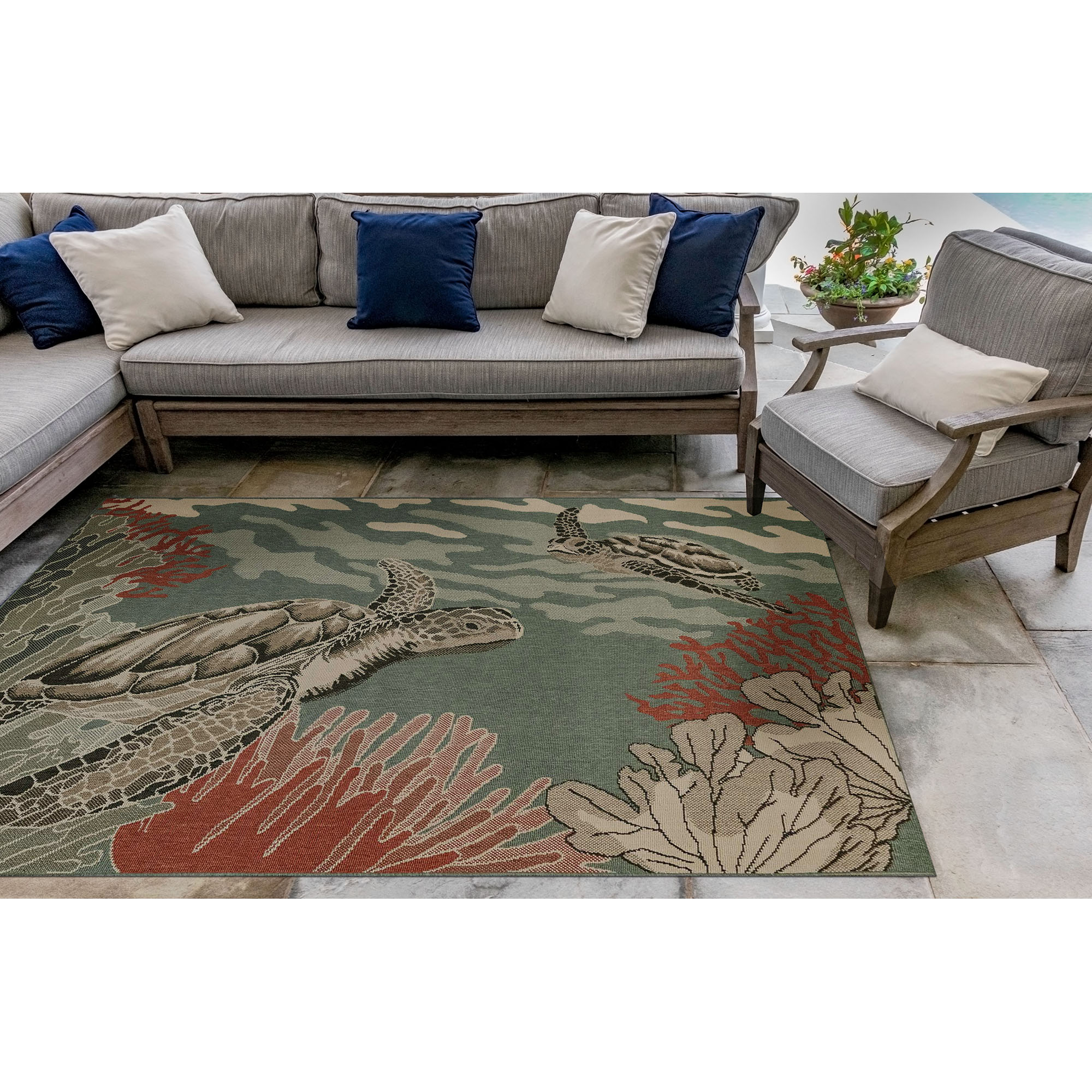 • Liora Manne Riviera Seaturtles Indoor/Outdoor Rug Ocean measures 6'6"X9'3"
