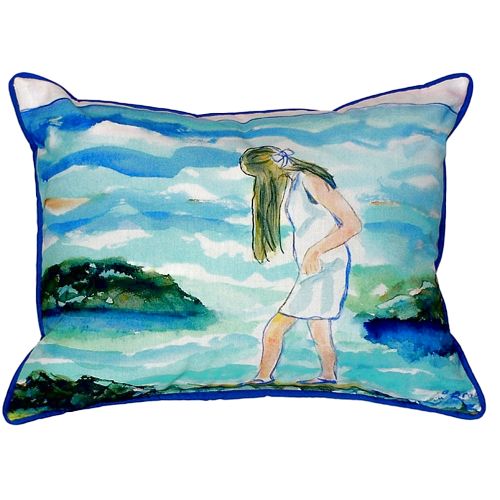 Mia on the Rocks Small Indoor/Outdoor Pillow versatile pillows are equally at home enhancing an interior design or adding life to an outdoor setting. They feature printed outdoor, fade resistant fabric for years of wear and enjoyment. Artwork on one side. Measure 12"x12" or 11"x14" depending on shape. Machine Washable Artwork on one side.