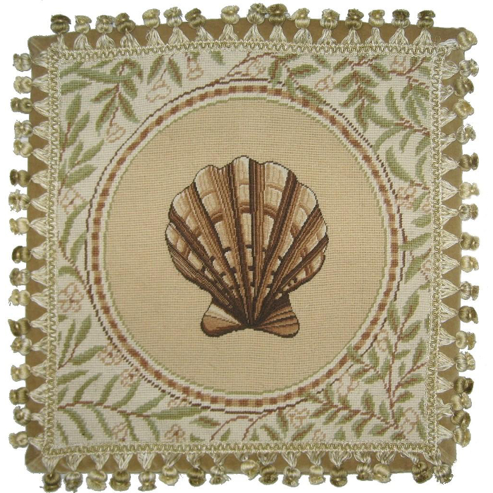 Home :: Home Decor :: Nautical Pillows :: Beach Needlepoint Throw Pillows :: Fan Shell Needlepoint Pillow