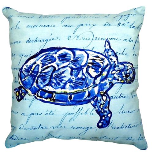 Sea Turtle Blue Script No Cord Pillow 16X20