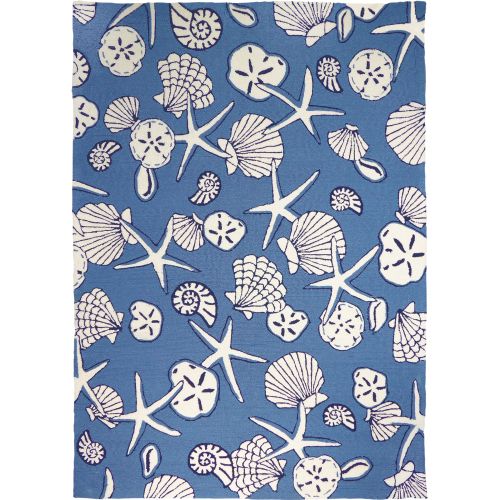 Serenity at sea transforms to serenity at home with the presence of this Homefires soft area rug. An assortment of white shells, starfish and sand dollars spread across deep blue waters on this indoor/outdoor area rug design. Available in multiple sizes, bringing the sea
