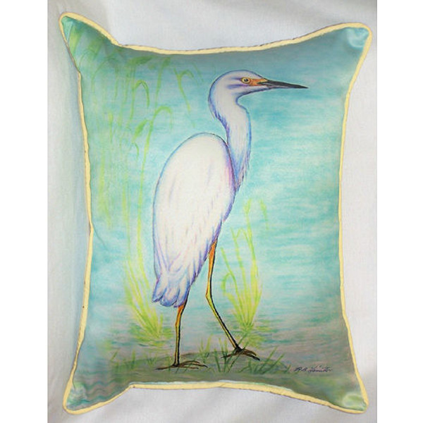 New "Art Only" outdoor pillow. These versatile nautical decorative pillows are equally at home enhancing an interior design or adding life to an outdoor setting. This throw pillow features a Snowy Egret printed on outdoor, fade resistant fabric for years of wear and enjoyment.