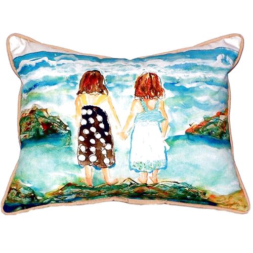 New Large indoor/outdoor pillows. Twins on Rocks Large Indoor/Outdoor Pillow versatile pillows are equally at home enhancing an interior design or adding life to an outdoor setting. They feature printed outdoor, fade resistant fabric for years of wear and enjoyment. Indoor/Outdoor Use Artwork on one side.