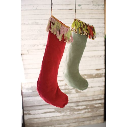 Velvet Stockings W Kantha Fringe - Red And Green, Set of 2 from the Kalalou Collection of home decor accents brings elegance to any home's decor.