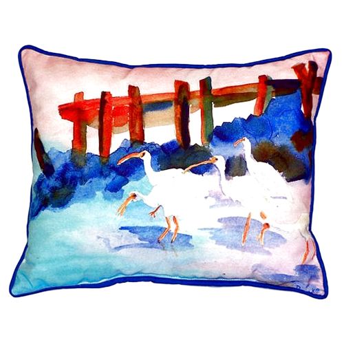 New Large indoor/outdoor pillows. White Ibises Large Indoor/Outdoor Pillow versatile pillows are equally at home enhancing an interior design or adding life to an outdoor setting. They feature printed outdoor, fade resistant fabric for years of wear and enjoyment. Indoor/Outdoor Use Artwork on one side.