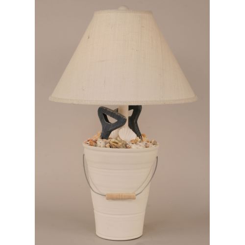 Bucket of Shells w/Shovel Handles Ht:27.5 Finish:Weathered Nude/Navy Shade:KT-110 Size:6.5x18x12 Finial:Matching Wooden Ball