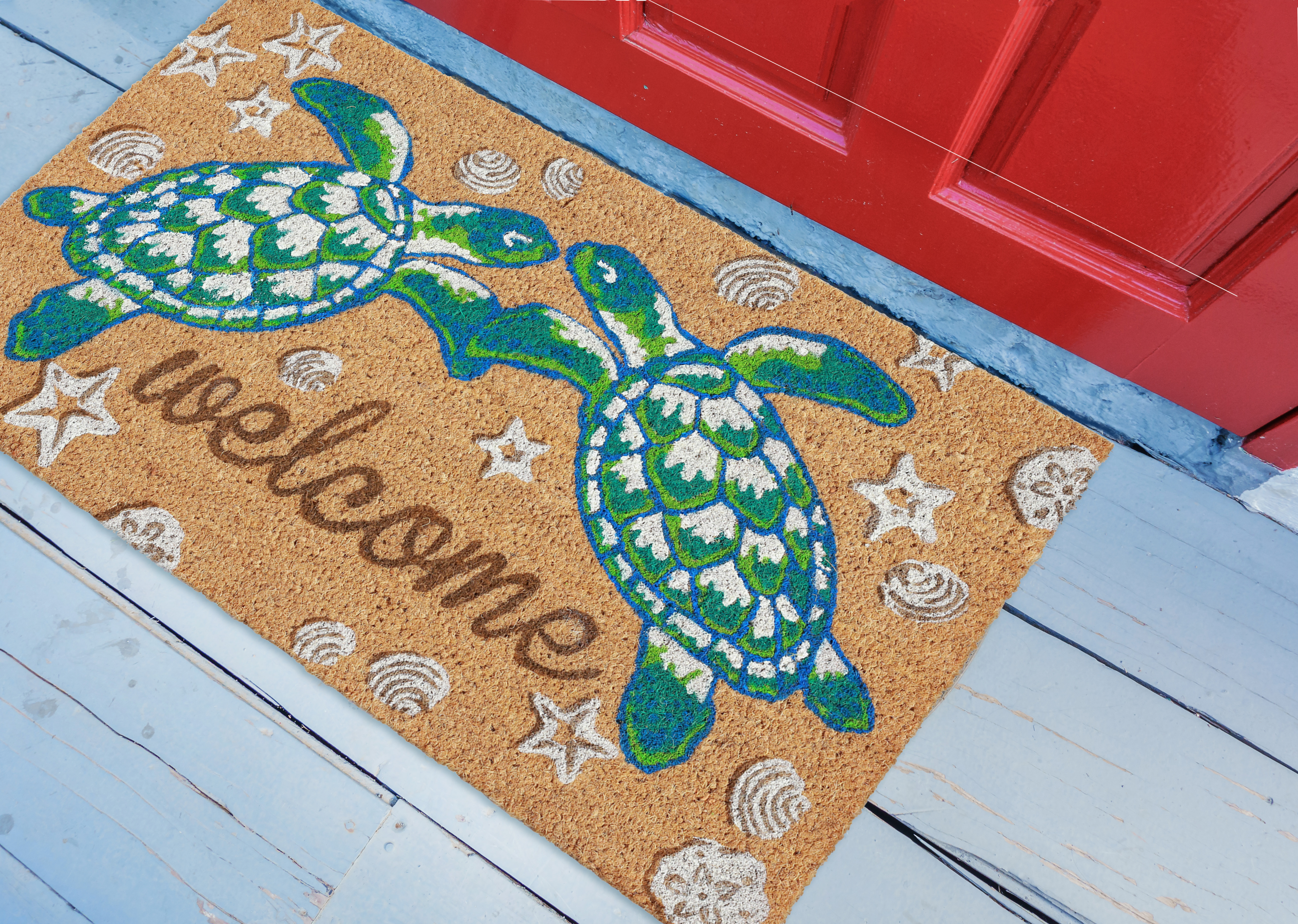 Liora Manne Natura Seaturtle Welcome Outdoor Mat Natural Clean by shaking, brushing or vacuuming. Keep out of standing water. To pro...